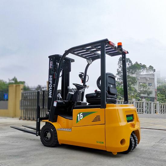1,5 Tonnen 3-Rad-Gegengewicht Elektro-Gabelstapler Hauptmerkmale: